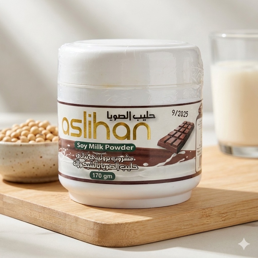 Aslhan SoyMilk Powder منتج طبيعي نباتي عالي الجودة، يُعد بديلاً مثالياً للحليب الحيواني، ويقارب في قيمته الغذائية الحليب خالي الدسم..