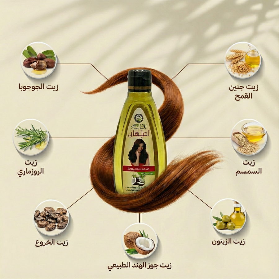 زيت أصلهان (حجم العبوة الواحدة 180 مللي) هو تركيبة متوازنة من الزيوت الطبيعية المستخلصة بأفضل التقنيات، صُمم خصيصًا للعناية بالشعر المجهد والتالف. يعمل الزيت على تغذية الشعر بعمق وتكوين طبقة خفيفة تحميه من العوامل البيئية مثل أشعة الشمس والأتربة، كما يقلل من الآثار السلبية لاستخدام مستحضرات تصفيف الشعر، ويعيد للشعر لمعانه ونضارته الطبيعية.